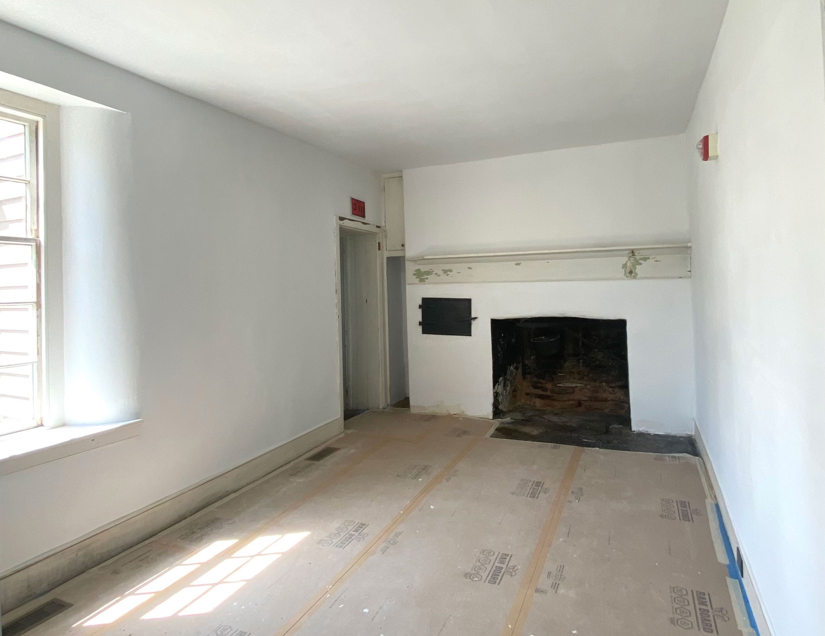 The 1829 Parlor was painted using colors identified in the Preservation Plan. Below photos show the room before and after painting. The oak floor will be refinished after all the rooms are restored.